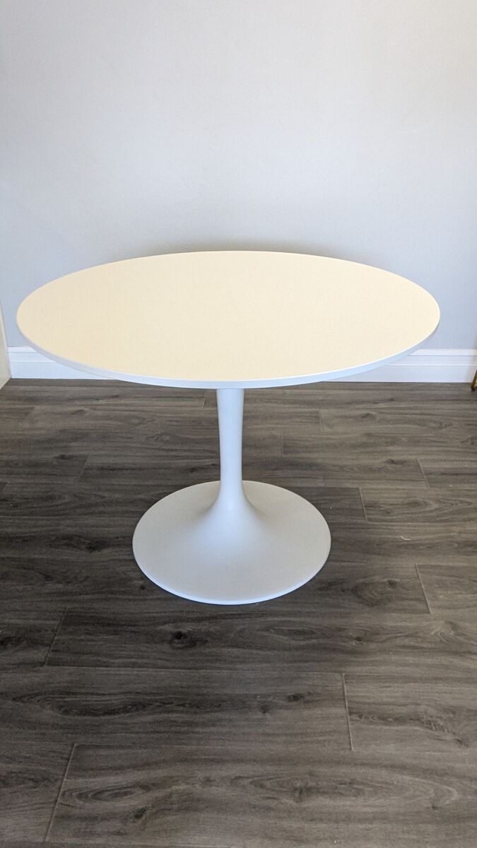 VenmoIKEA round dining table and four light green cushioned chairs. Excellent condition.