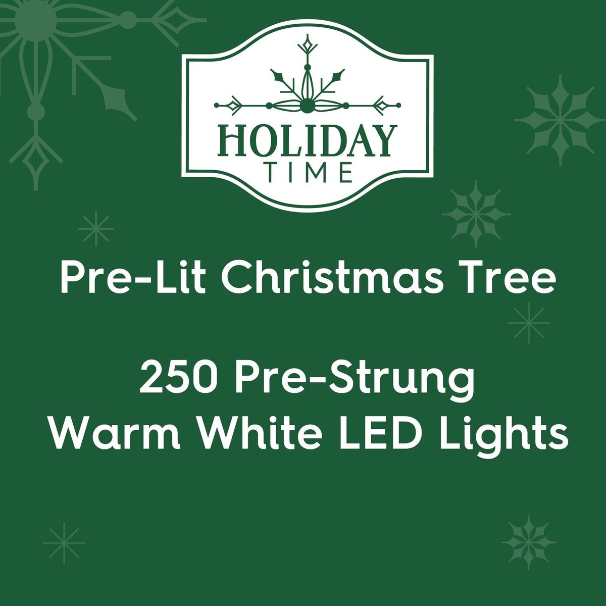 The tree is pre-lit with 250 warm white LED lights that utilize SureBright technology, ensuring your display remains bright and beautiful even if one bulb fails. We proudly stand behind the quality of our products. 188505 1-29-26 00.4 rt52