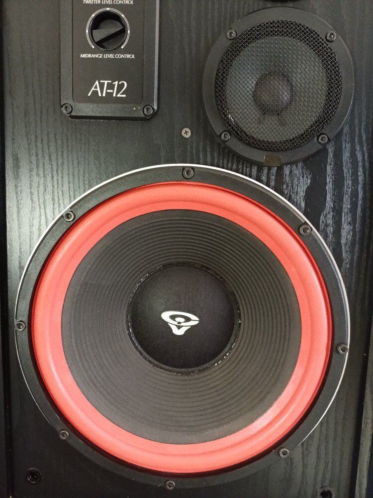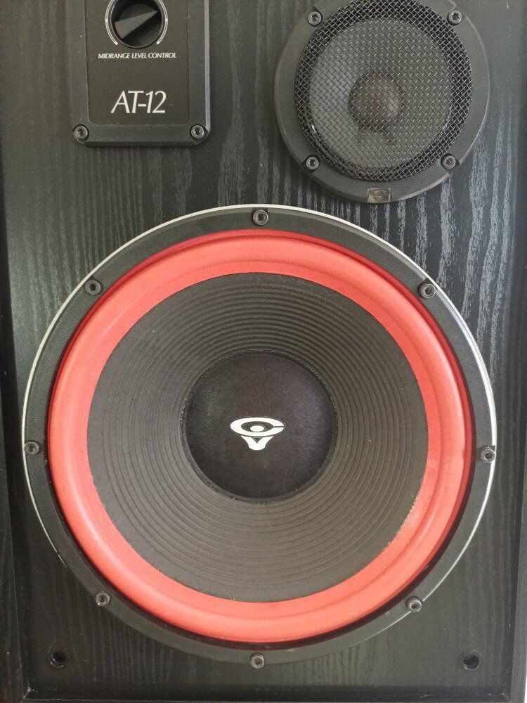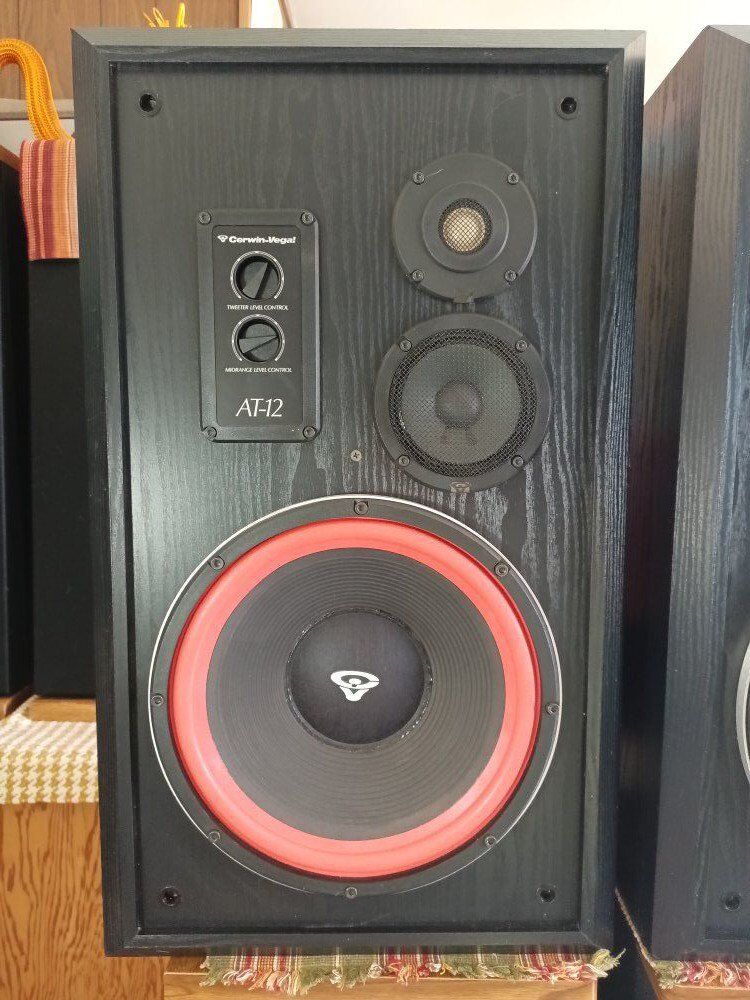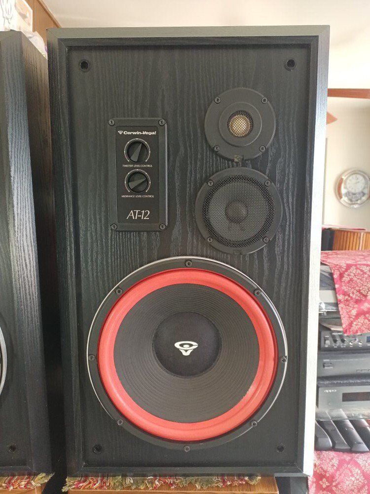 CERWIN VEGA AT 12, good surrounds, dust caps, midrange, tweeters, level control's, banana terminals, ( No Grills / No plith's ), some box ware.