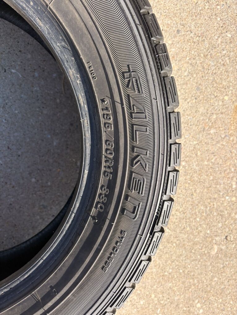 ApplePaySize: 195/60R15 Set of 4 - tires only (no wheels) Tread looks unused / like new Stored indoors DOT 2211 (manufactured 2011) No visible cracking or dry rot Selling as-is due to age