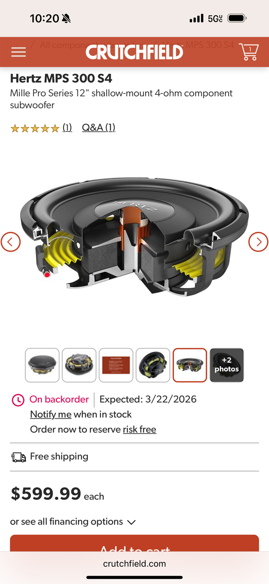 ZelleI re wanted to use this subwoofer but unfortunately it won't fit in my Limited space Tacoma. I ended up buying a Focal as the basket is 1/2" smaller and worked in my enclosure. Anyway get this subwoofer with maybe 5 hours of playtime on it. Comes with Factory Paperwork/Warranty and tools. Looking to sale unl you have some Morel,Focal or JL 6.5" door speakers to trade?