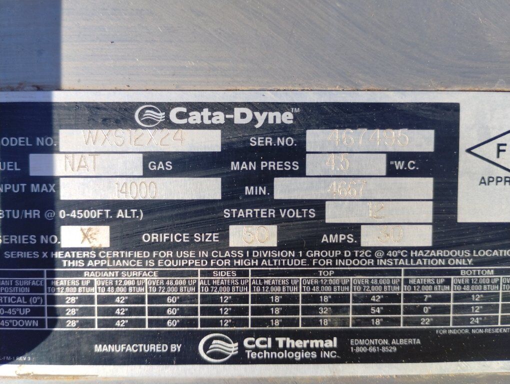 PayPalI have a indoor outdoor natural gas or propane catta-dyne heater, Fox News 1250 bucks only use one winter, all the specs are in the pictures on the spec chart works great