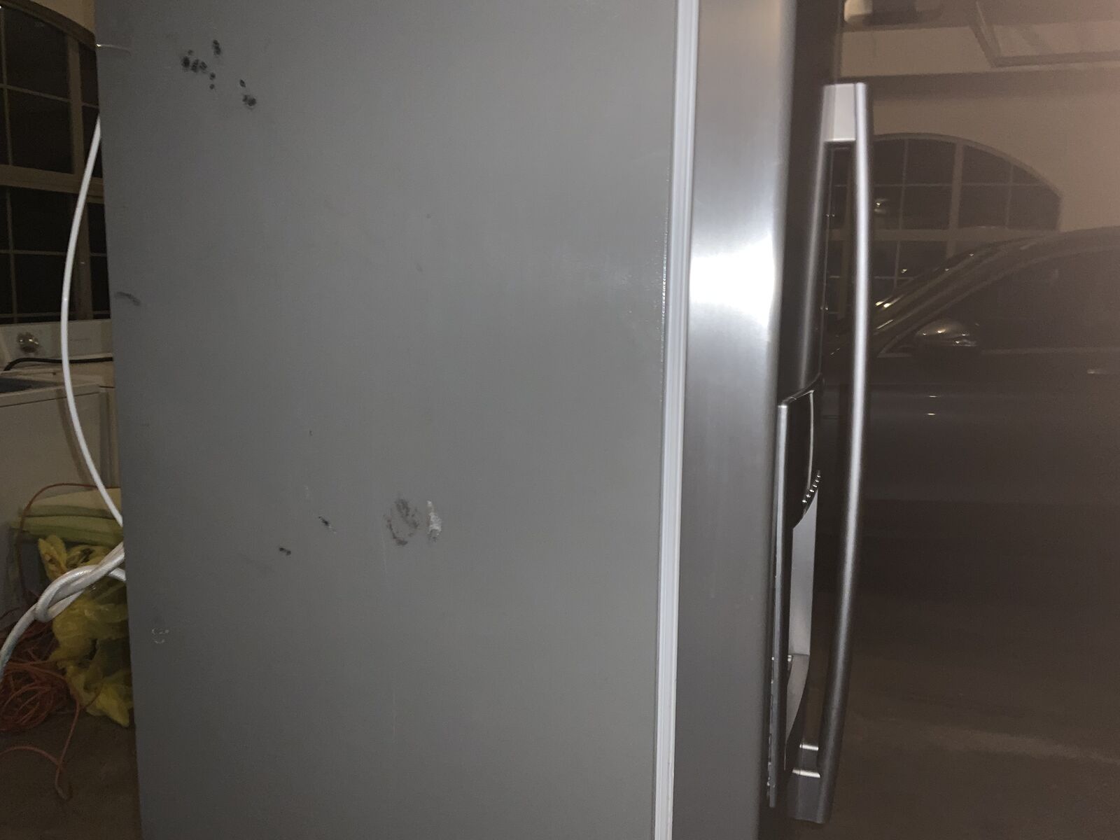 There is a blemish on the front, put a magnet or picture to cover, it's an inch or so