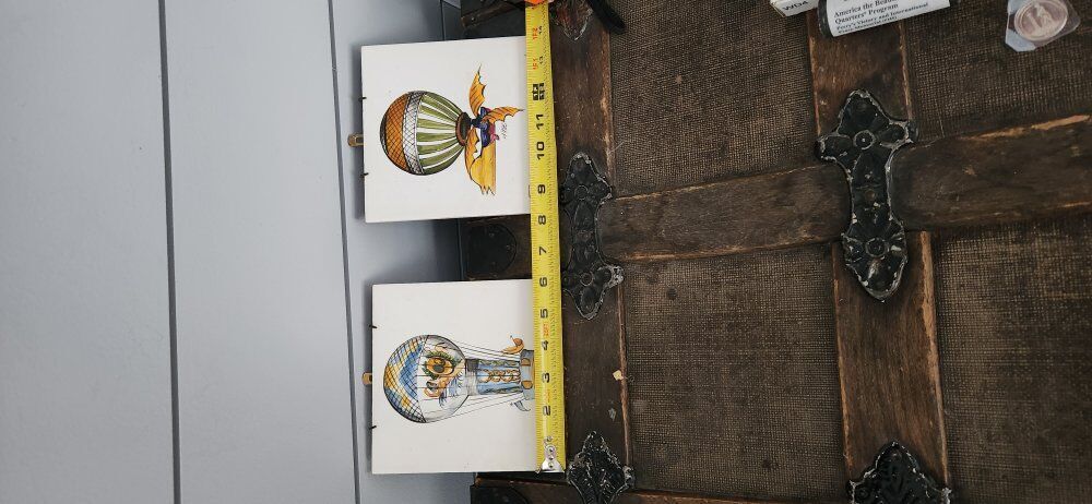 VenmoHand Painted Ceramic Decorative Tiles - Montgolfier balloon human first flight. Two hand painted tiles 6"x6". Depicting the first time in history that humans took flight in balloons in 1785! Absolutely beautiful and colorful artwork! The reverse has hand painted words "Made In France for Lord and Taylor". Although I don't have the provenance, I am sure it is yes, that Lord and Taylor. There are also brackets mounted on the back to hang on a wall. The brackets even look vintage. You don't see these very often, they are pretty scarce. First $60 gets them. Contact throught KSL Messenger or text 8O1 64I477I. KSL Messenger is best.