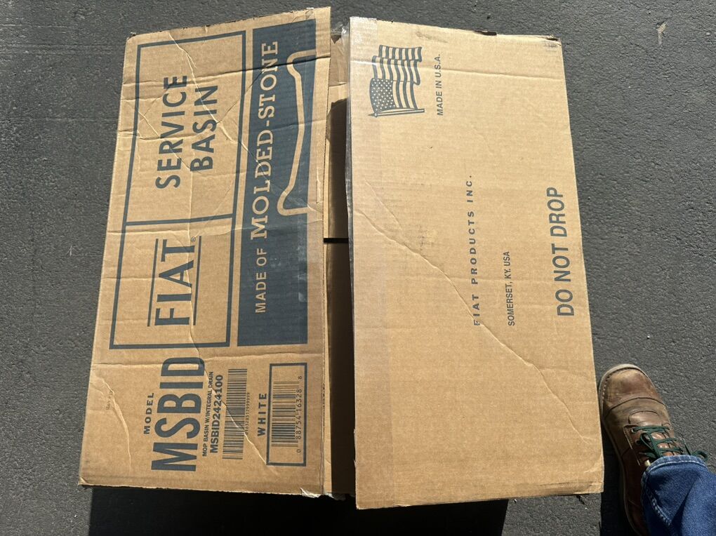 ApplePayUnused FIAT service basin. Made of molded-stone, white color. Model MSBID2424100. Comes with drain parts. Still in its original box, ready to go. List price on these are $190-280’s plus shipping.