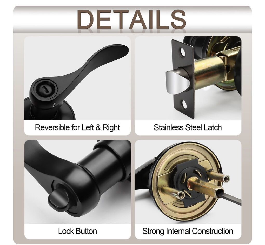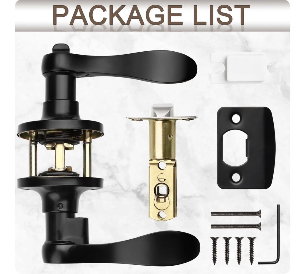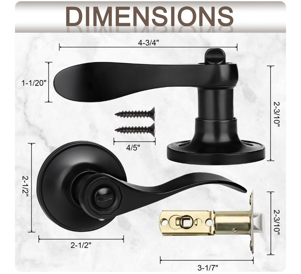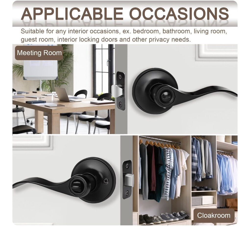 5 Pack Matte Black Door Handles Privacy Door Levers, Heavy Duty Bed and Bath Door Locks Interior Door Knobs, Reversible Keyless Wave Lever Door Handles