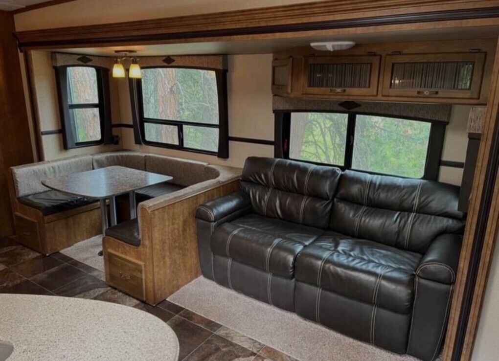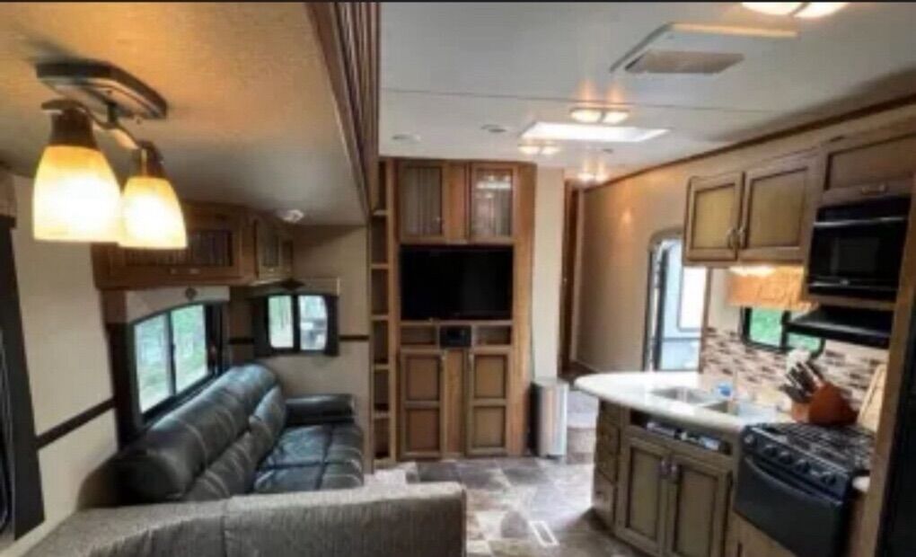 The open-concept living and kitchen area provides ample room to relax, entertain, and dine, with slide-outs that make the interior feel bright and roomy. Plenty of storage throughout, quality finishes, and a thoughtful floor plan make this RV ideal for extended trips or full-time living.