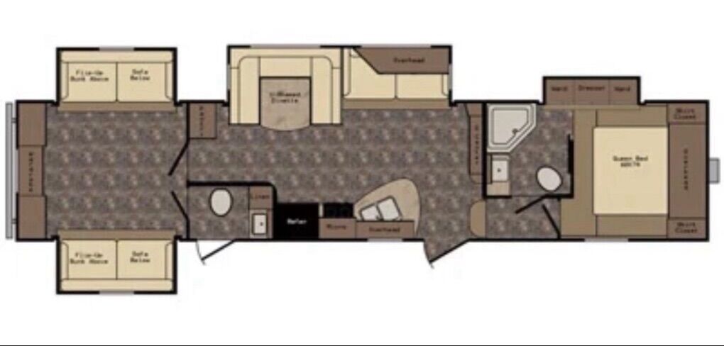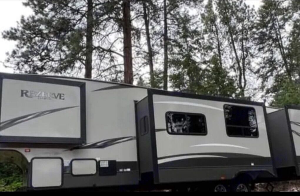 Beautiful CrossRoads Reserve 5th Wheel with 4 spacious slide-outs, designed for comfort, room, and family-friendly living. This layout features a private rear bunkhouse with double bunk beds, perfect for kids or guests, plus a convenient half bath located in the bunk area. The full main bathroom offers plenty of space and privacy for everyday use.