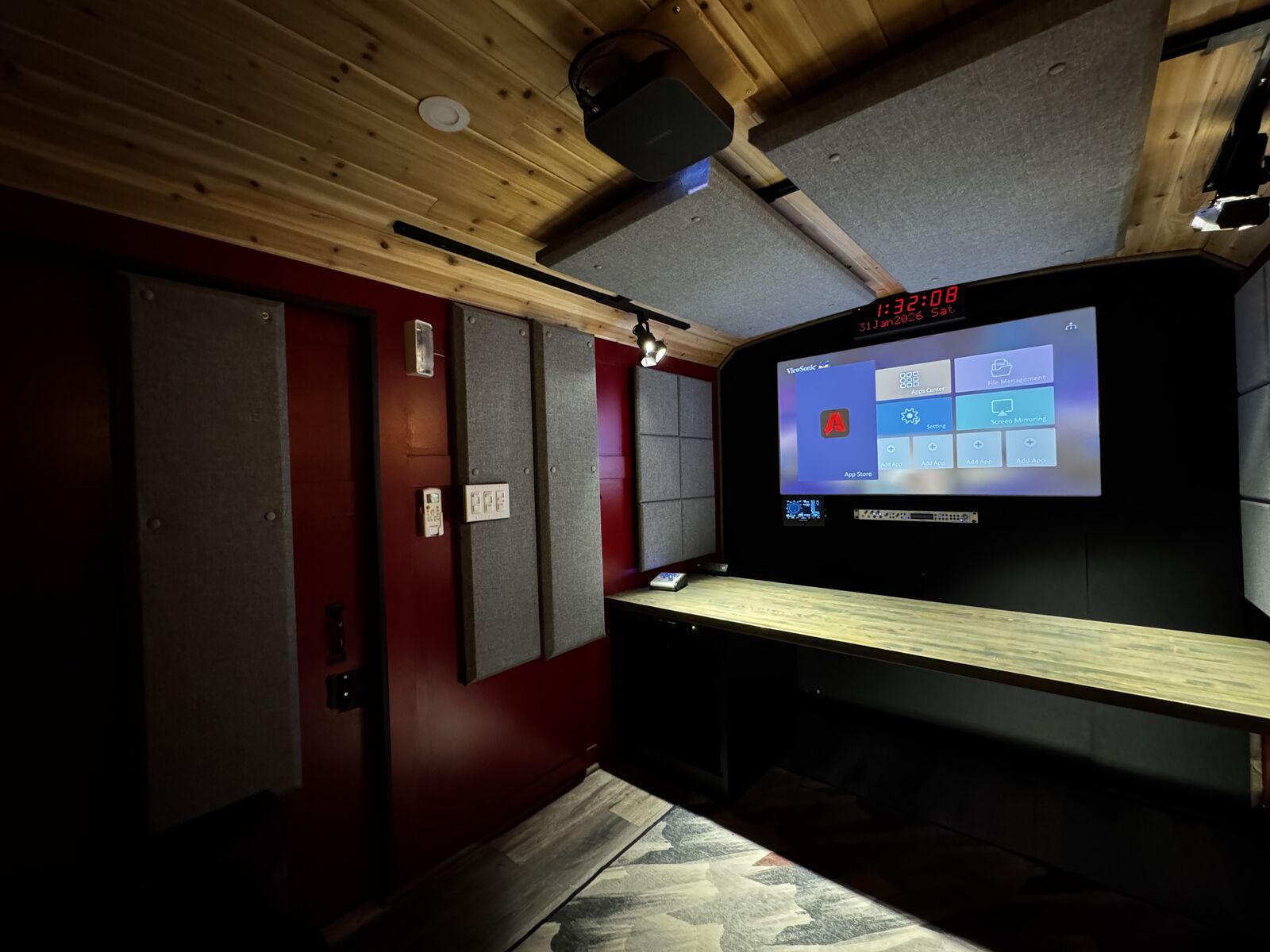 There is one equipment rack in the control room itself and one in the "garage" area for everything you might need. You can customize it all you want! I had networking and I/O panels in the garage and wired it to patch panels in the control room. There is a projector mounted to the ceiling with an HDMI cable ran through the walls and down to the control room rack.