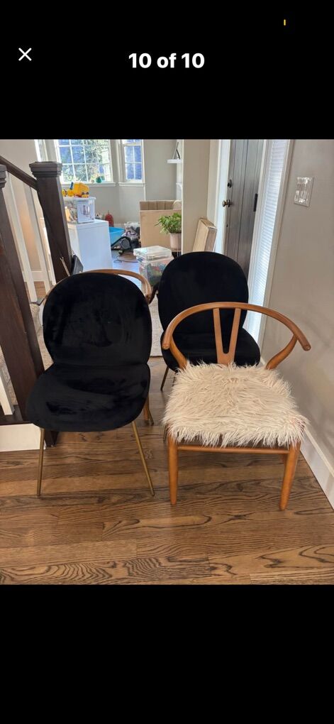Beautiful live-edge solid wood dining table with gold metal base, matching bench, and four modern chairs (two wishbone-style and two black velvet). Good condition with normal use, from a clean pet-friendly home. The design fits seamlessly in mid-century modern, bohemian, or Southwestern-inspired spaces — warm, organic, and timeless. No longer needed as the dining room is being turned into a creative space for kids. Approx. dimensions: 78”L x 36”W x 30”H. Pickup in Jeremy Ranch. Cash or Venmo.