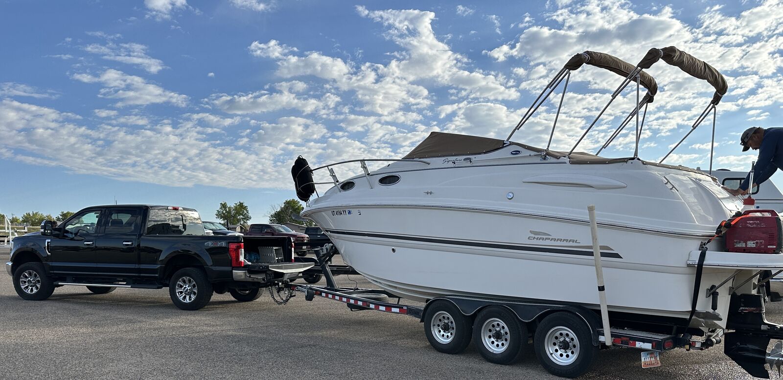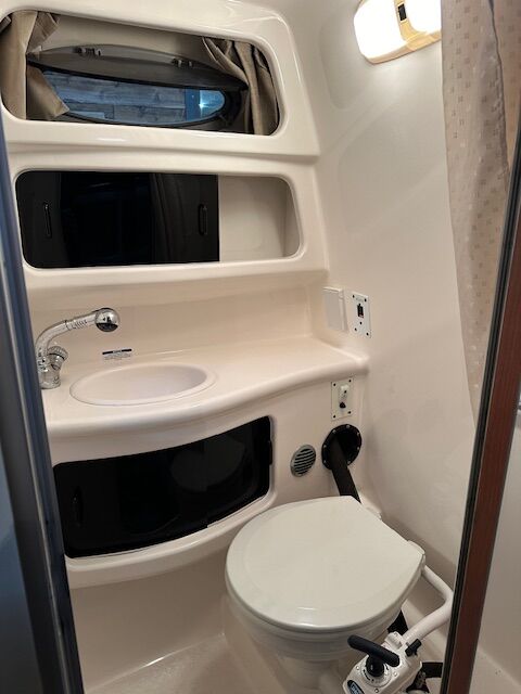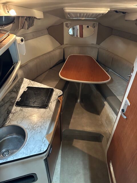 Gorgeous 26ft cabin cruiser. Comes with the big 496 engine, Bravo 3 outdrive. It has 2 props (18 & 24). Full size bed, fold down couch/bed, captain's chair. A/C in cabin, water heater, extended swim deck, windlass anchor, refrigerator, sink and shower in the bathroom, vacuflush toilet, outside shower, lots of storage. Travel cover, 2 biminis, full enclosure, storage cover. 566hrs, Upholstery is excellent. Trailer has new tires. Stored in a shed. OBO
