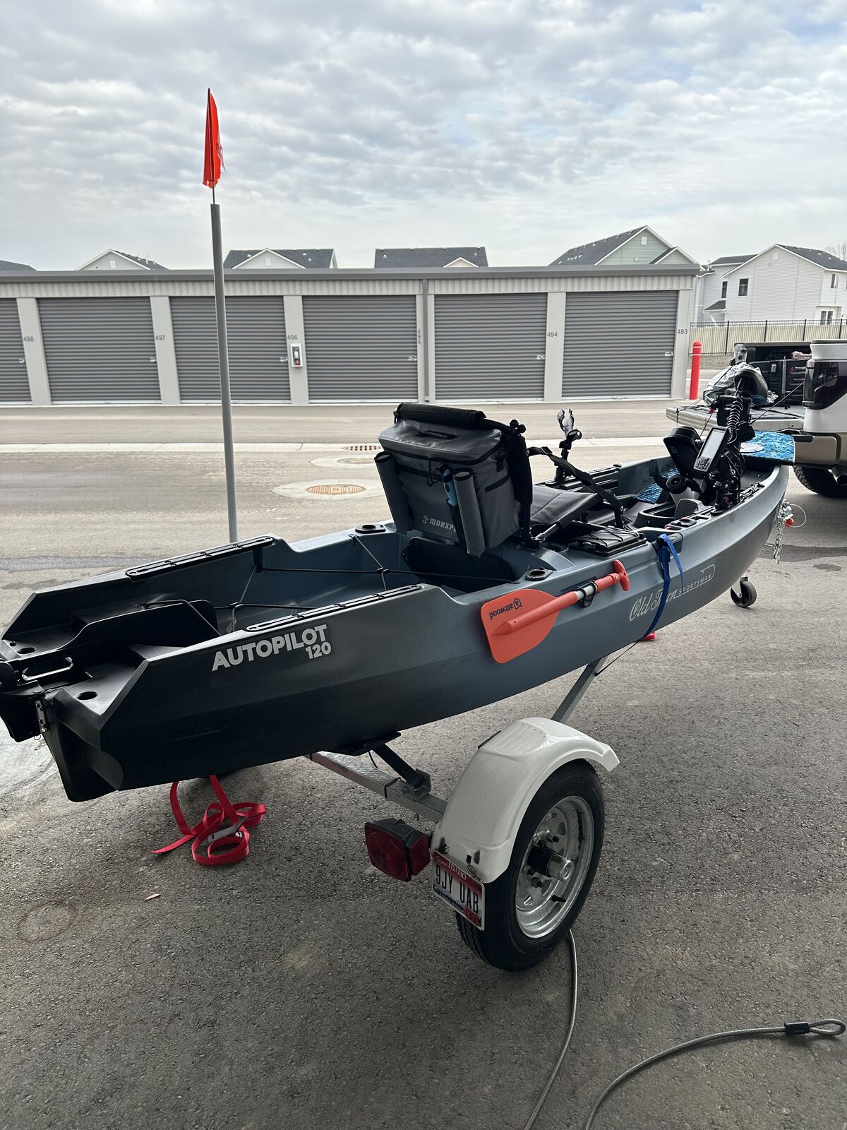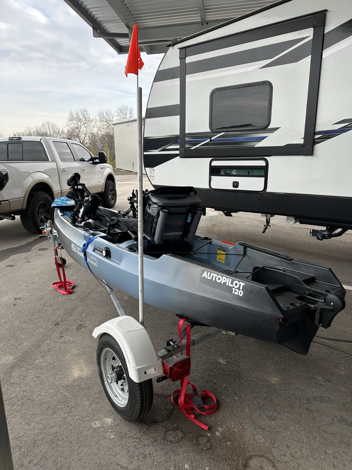 2024 Old Town kayak 120 AutoPilot with the trailer included. Been in the water one time. LIKE NEW with accessories and upgrades!