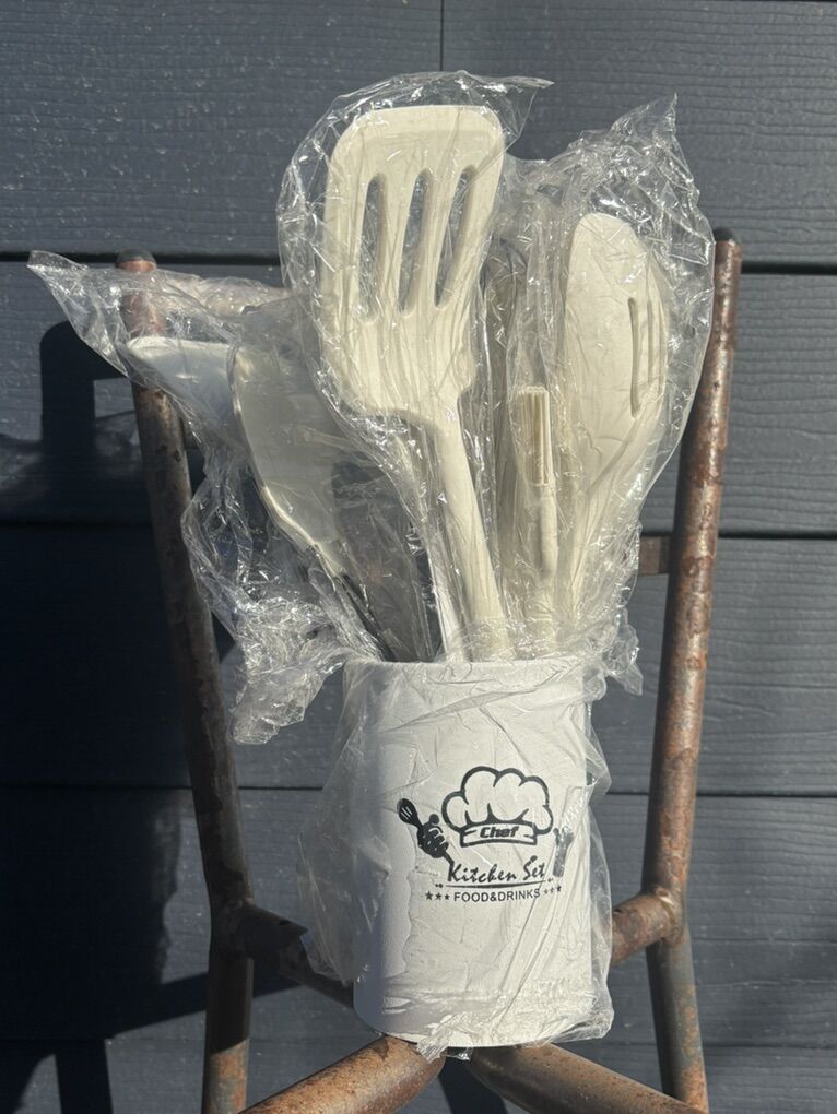 Brand new 12 piece kitchen set with additional kitchen aid meat tenderizer. 13 pieces total. Unused.
