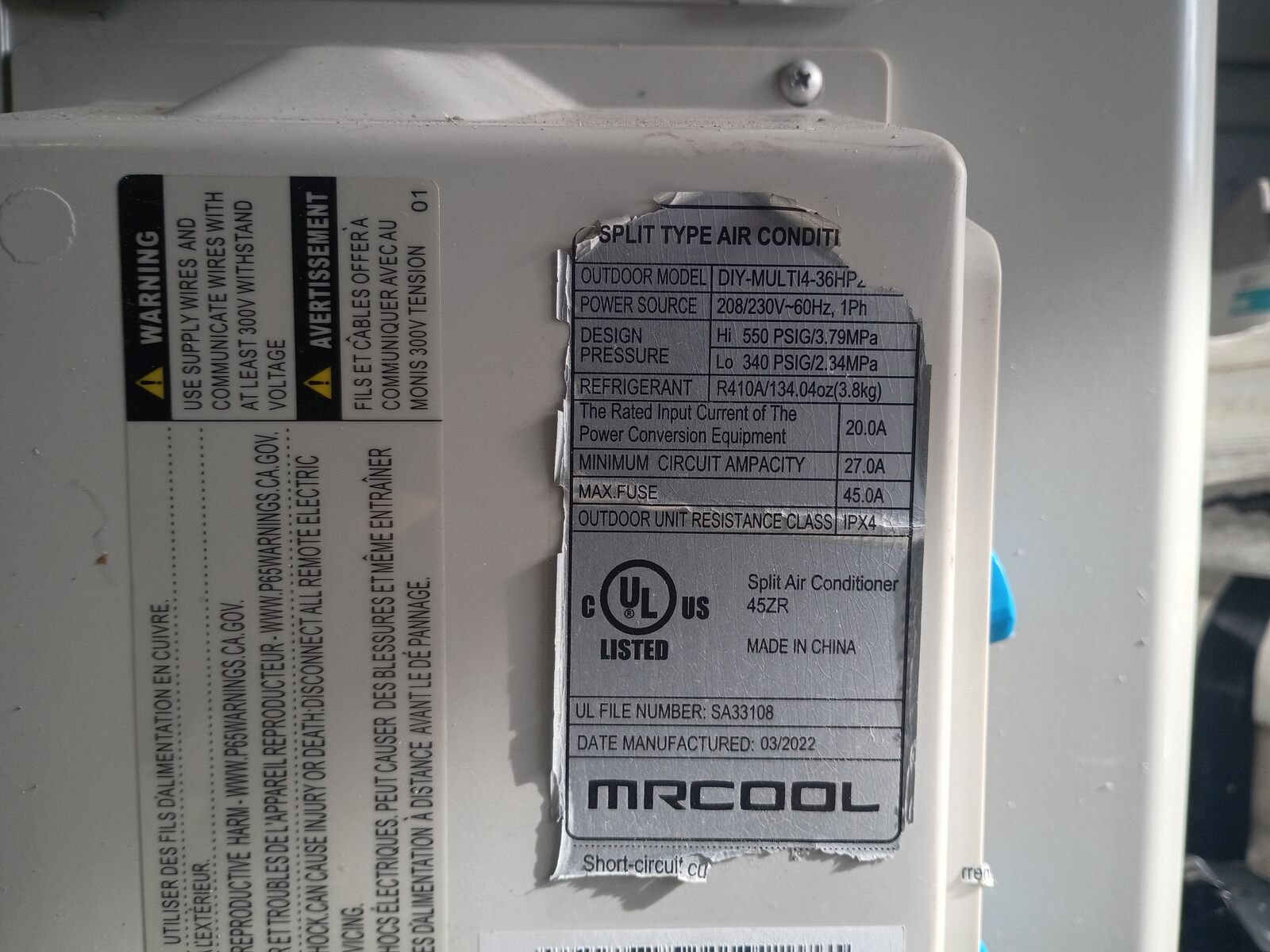 VenmoPower Source: 208/230V~60Hz, 1Ph Refrigerant: R410A / 134.04oz (3.8kg) Max Fuse: 45.0A Manufactured Date: 03/2022 comes with 2 head units but is capable of running 4 I do hvac for a living and can install the unit for 20 bucks a hour which is at a major markdown hvac techs charge anywhere from 80 to 130 an hour for labor