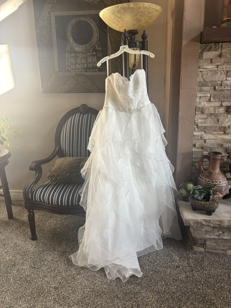 Size 12 Good condition Pick up only Sweetheart neckline Vail included