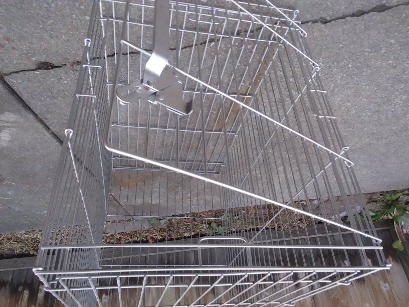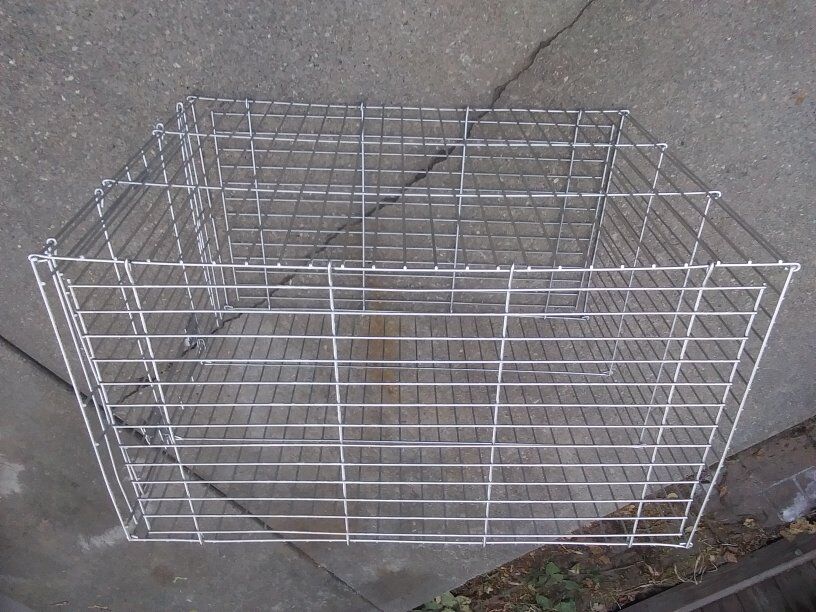 Hi. I have a metal chain link cage perfect for most sizes of critters known to be city dwellers; incl cats, dogs, squirrels, racoons, birds and anything else needing to be caged, penned, transported, or needing a time-out space of their own. And it folds up flat from a rectangle 36" long by 21" wide by 28" tall complete with a large door that has a latch that can be locked. Asking $30 but will consider reasonable offers as i would like to move this item quickly. Thanks! P.S. i do not know why my photos are sideways and upside down. Ill work on those.