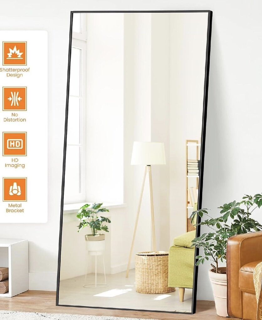 VenmoLength Mirror, Standing Large Floor Mirror for Bedroom, Living Room, Bathroom(Black) 75x35