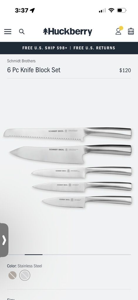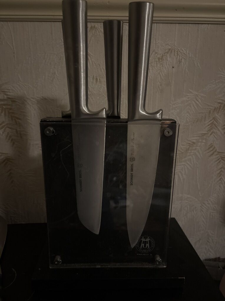 Barley used 6 piece knife set. Schmidt Bros. Brand $120 cost online brand new