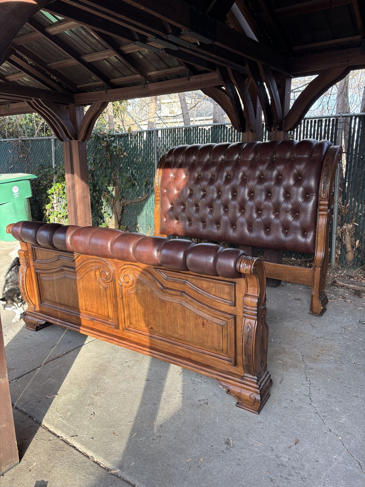 ApplePayAICO Furniture Tuscano California King Sleigh Bed headboard and footboard. In great shape, stored inside. Footboard stands by itself. Solid wood & quite heavy.