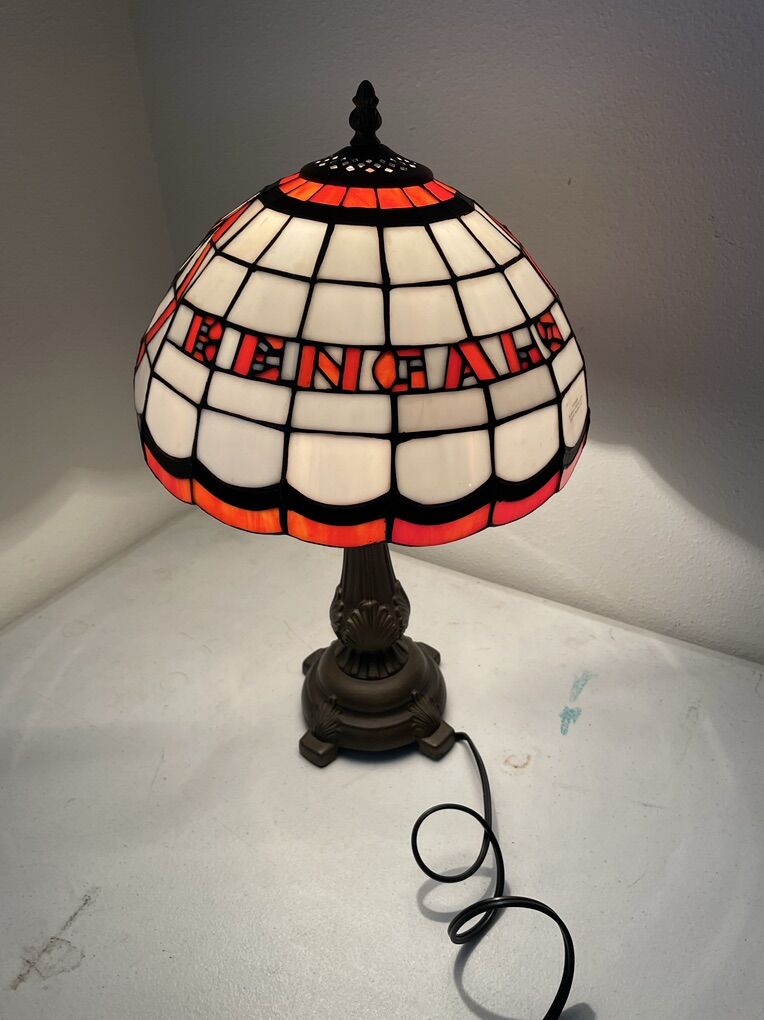VenmoBeautiful Tiffany-Style Cincinnati Bengals themed lamp. Stained Glass Lamp - Tested And Functional vintage.