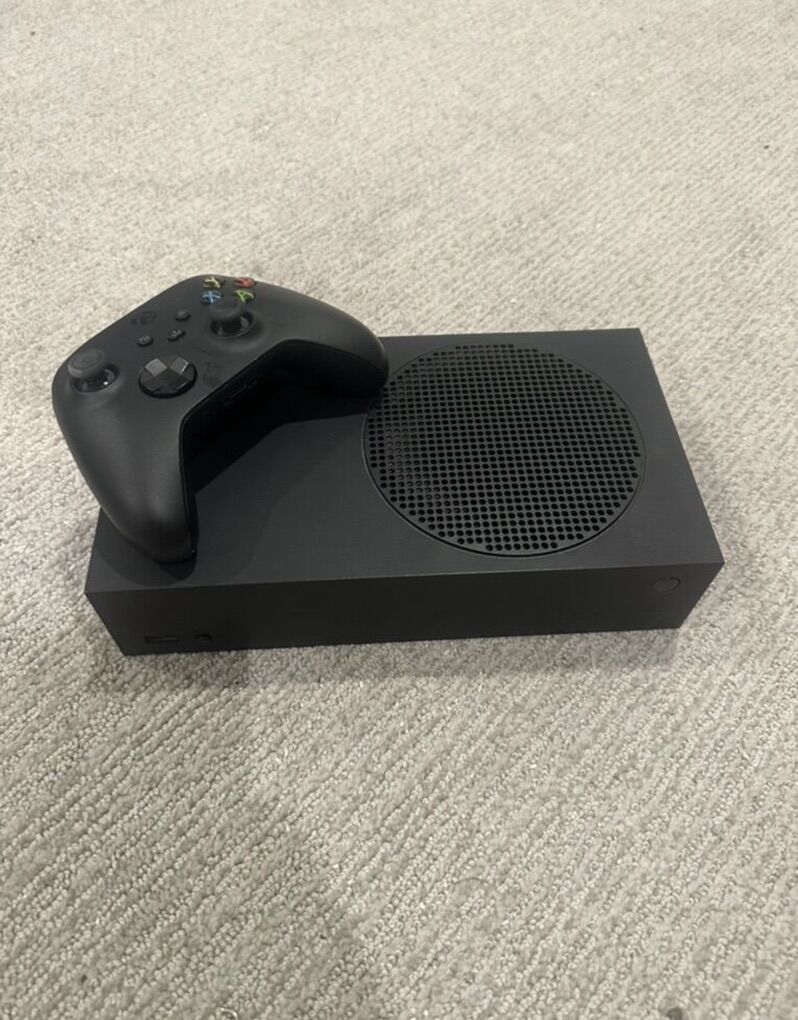 ApplePayXbox s 1T black with 1 controller and all the cords. Works great, just don’t use it anymore. The controller is only missing the battery cover