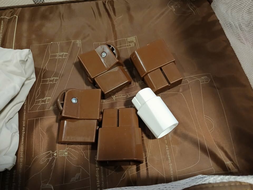 VenmoBassinet is able to lock next to the bed. Has a crack in one corner, still works well.