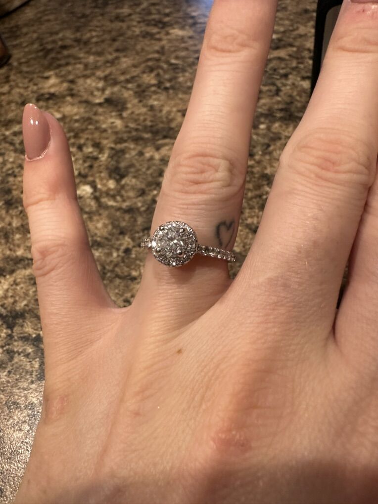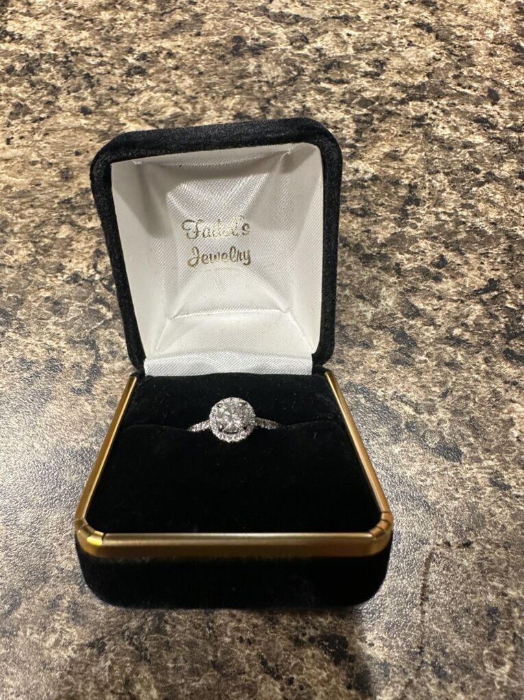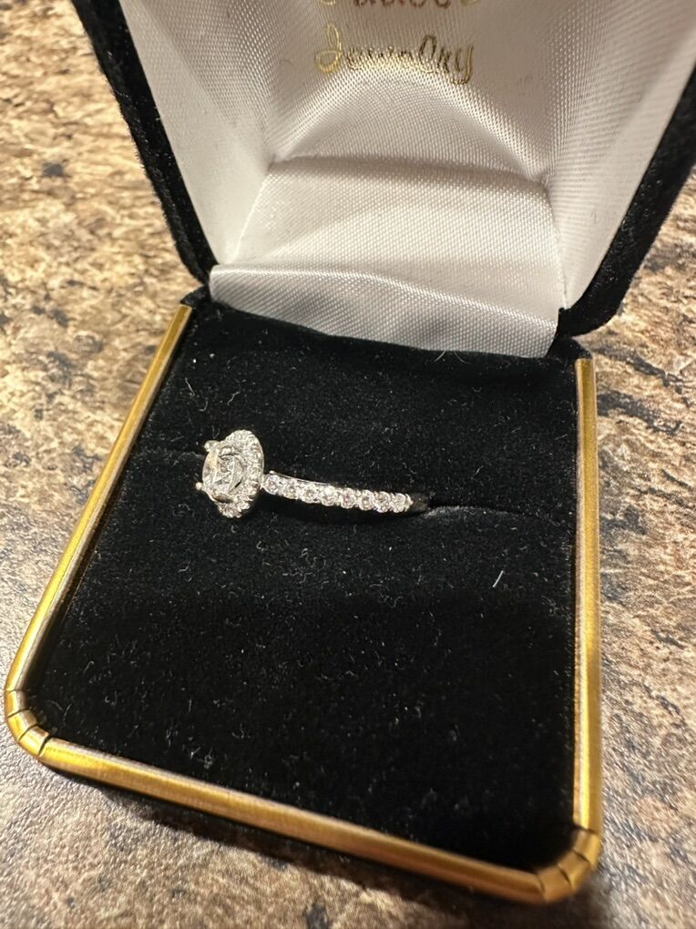 Gorgeous round cut Diamond engagement ring for sale. Barely worn, in perfect condition. I got it cleaned and got prongs checked by Shane Company on 23 NOV 2023 and they’re all sturdy, has not left the box or safe since.