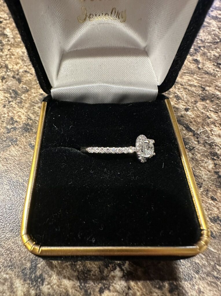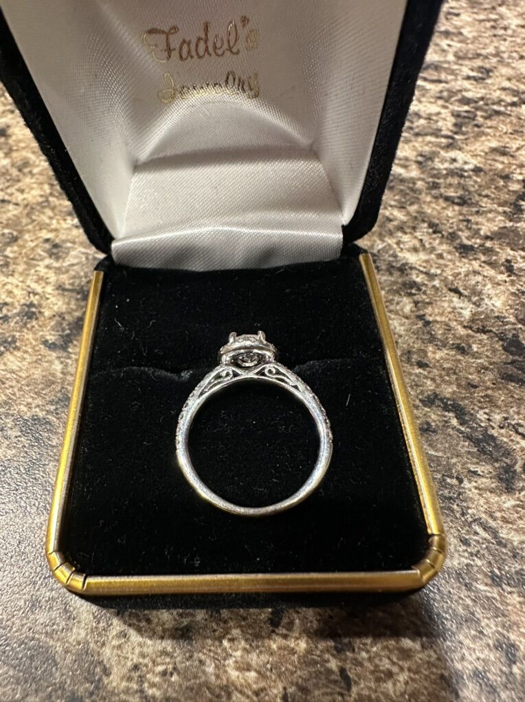 This would be the perfect ring to add to that special someones hand without absolutely breaking the bank!! Just the head/prong of rings go for over $1,000 now, not including the diamond or band. It is very sparkly and simple but also very elegant and stunning to look at! You can also make it more custom with a wedding band and up the look to it. Originally purchased at Fadel’s jewelry in Bountiful. Called to get a copy of the original paperwork a few days ago and they don’t have it anymore.