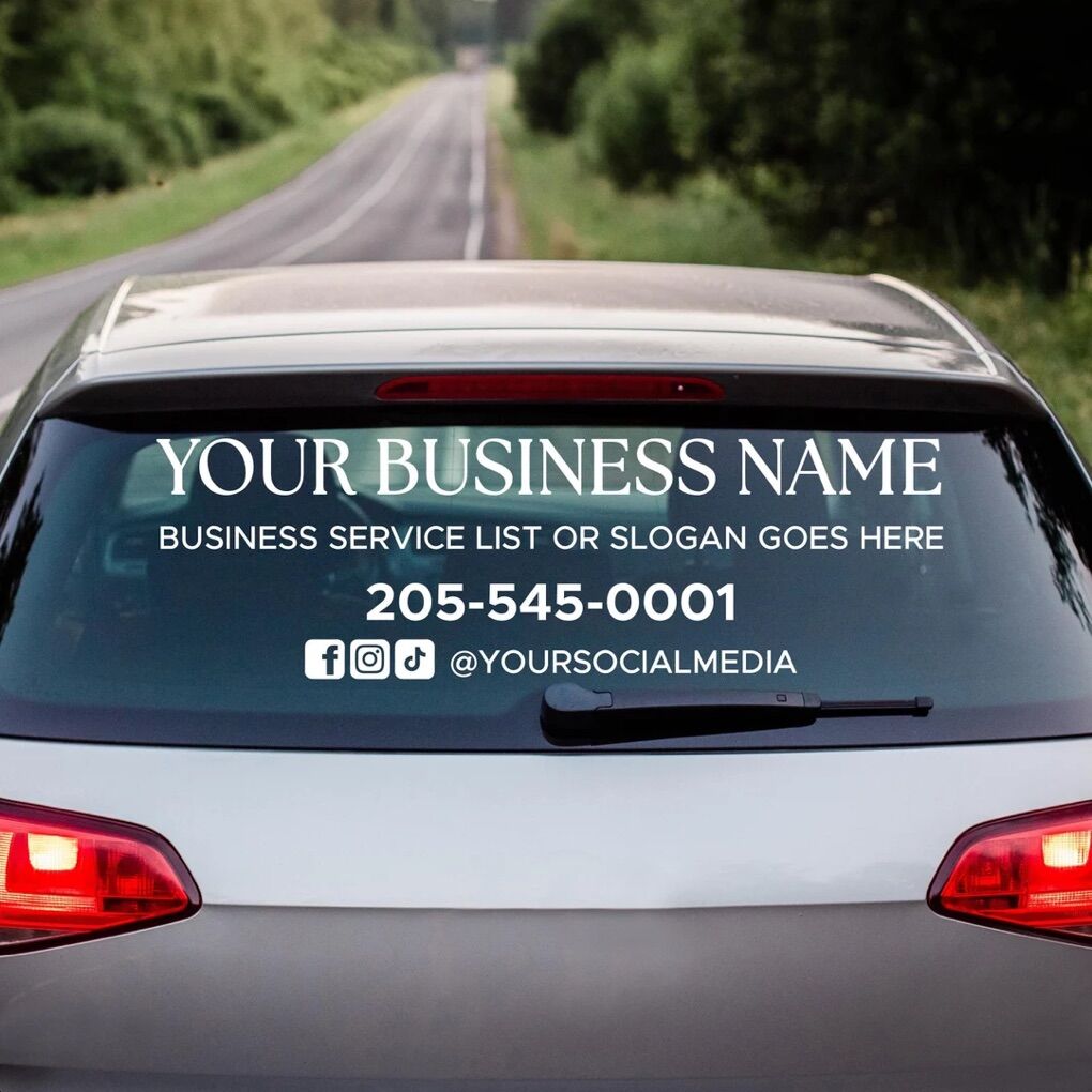 ZelleRear glass decals for trucks & SUVs. Good option if you want to put your business name, logo, phone number, or services on your vehicle. Printed on perforated vinyl so you can still see from the inside while the design is visible from the outside.