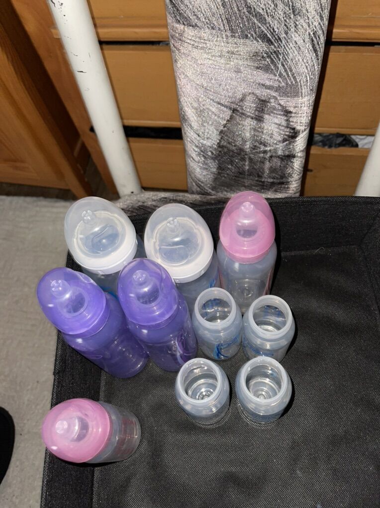 1 pink: 4oz 4 without lid: 4oz 2 clear: 9oz