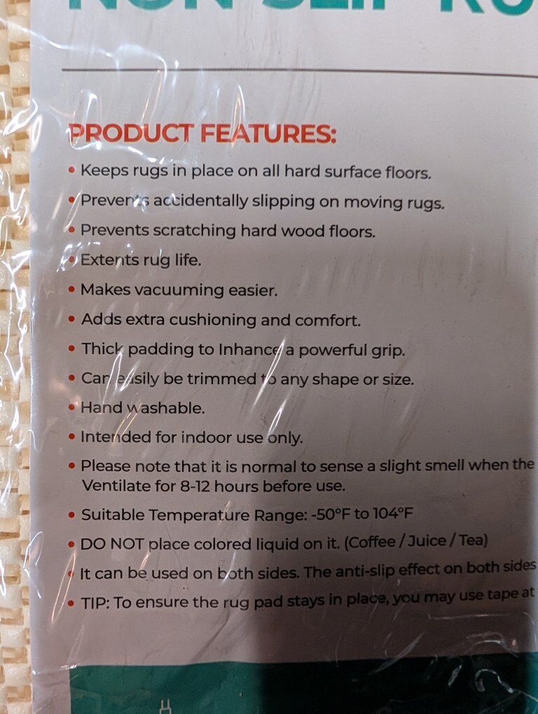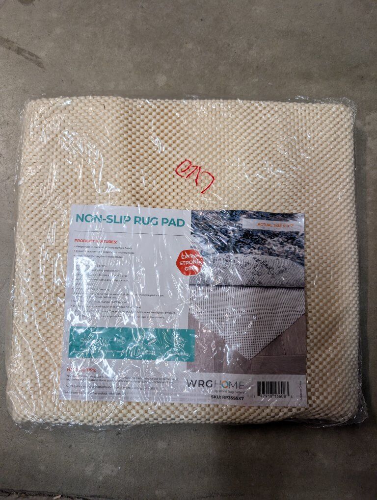 VenmoBrand new extra strong grip non slip rug pad for 5ft by 7ft rugs. Creme color. Goes underneath a 5x7 rug on hard floor to keep it from shifting or moving around. Asking $15. Text if interested 801-903-8337