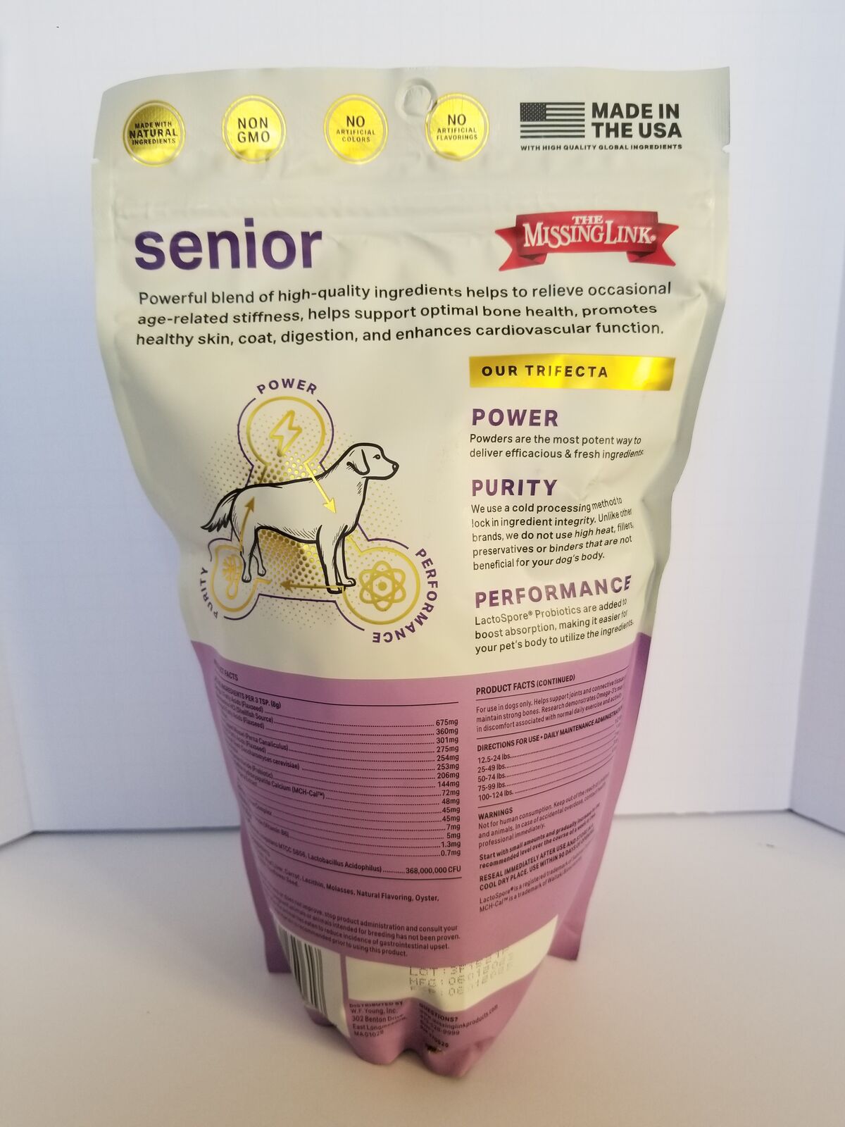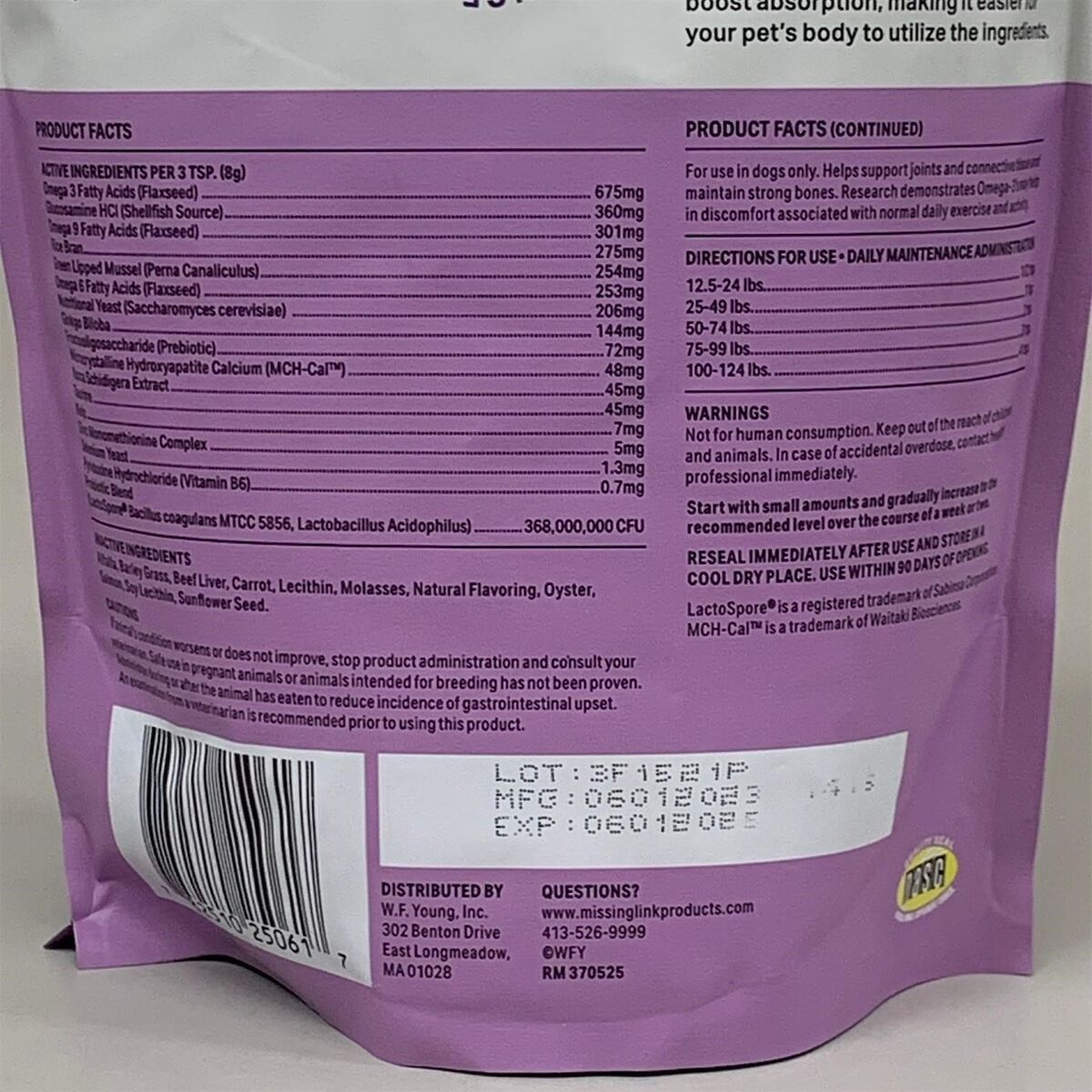 PayPal2-Packs included in price! Both unopened/mint condition. 1 lb. ea. Glucosamine and New Zealand Green Mussel support flexibility, mobility and comfort in senior dogs. Balanced Omegas support a healthy immune system, sustained energy levels and healthy skin and coat. Aids a healthy digestive system. Gingko Biloba supports eye, brain and memory to help cognitive functions.