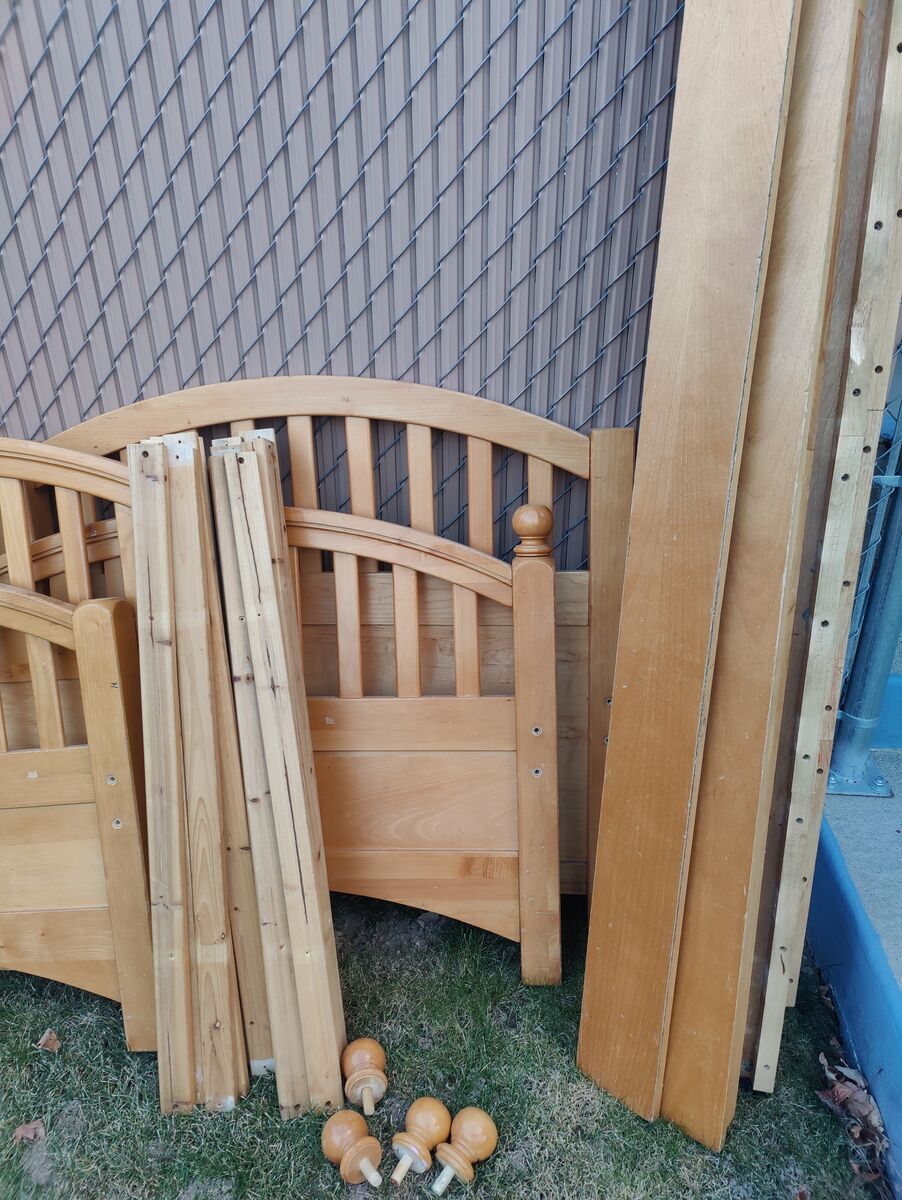 VenmoI've got a twin sized bunk bed available. It's in really good shape and is well built. A couple of pieces have a little bit of purple paint on them, but you can pretty much hide the areas (one of the side rails you can just put on the backside against the wall, and one headboard has a little in it as well). Hardware is available for one bed, but you'll need to get 8 bolts and nuts for the other bed. Also, you may want to get a wooden dowel to cut down for the pegs between top and bottom bunk (or you could use the two available on opposite corners).