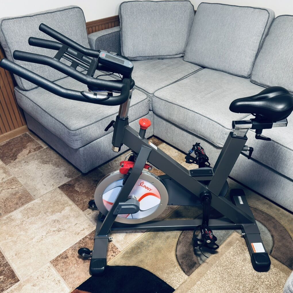 CashAppSunny Health & Fitness indoor cycling exercise bike with magnetic resistance and belt drive. It’s smooth, quiet, and very solid, and has been great for indoor workouts.