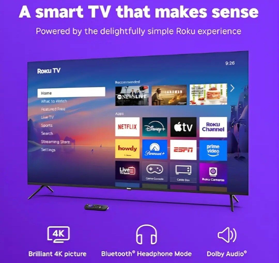 Roku Smart TV 2025 – 65-Inch Select Series, 4K HDR TV – RokuTV with Enhanced Voice Remote – Flat Screen LED Television with Wi-Fi for Streaming Live Local News, Sports, Family Entertainment