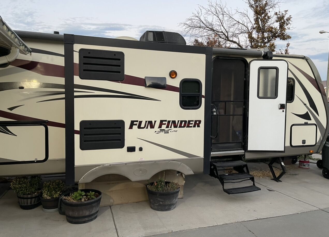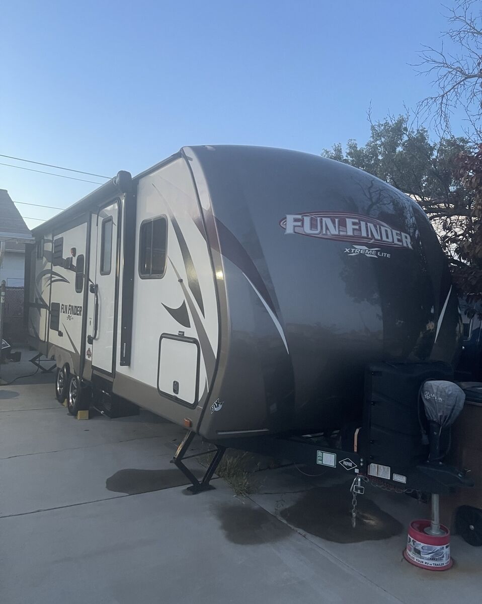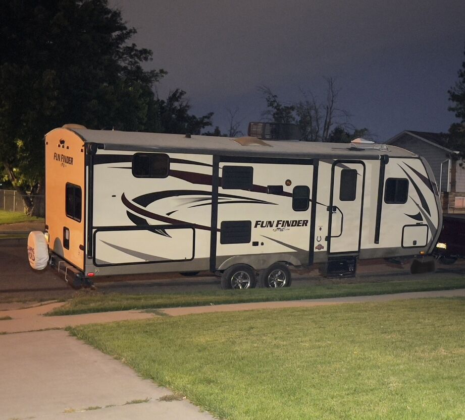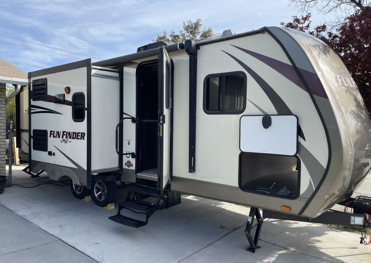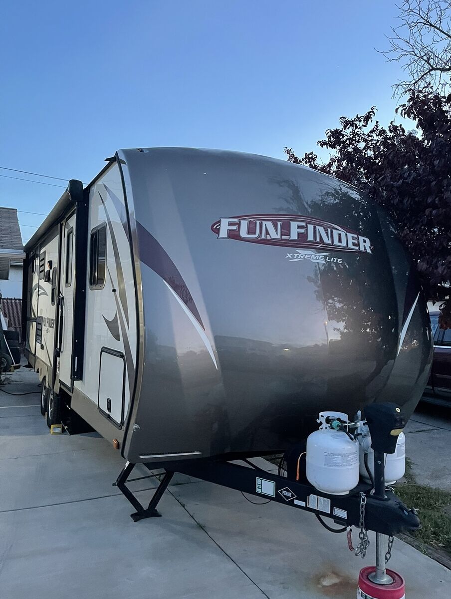 2016 fun finder Extreme light X-237DSB Travel Trailer, Two slide . Great layout in this Model HUGE LIVING ROOM You have enough living room floor and still have plenty of room to walk around, Big kitchen counter desk. Plenty of light as well!. Sleeps 8, full awning electric with LED light, 3 burner gas cooktop, oven, microwave, 2 door fridge/freezer, huge full bath with shower and lotta space, sink, toilet. Has plenty of storage: pass through, outside storage, outside the big kitchen with the Hot and cold water sink, storage under front bed and under dinette seats as well as many drawers and cabinets. Ducted A/C and furnace, 2 propane tanks, 2 batteries, battery. CD DVD player, Samsung smart TV, exterior speakers. Dry weight, half-ton towable very easy to pull. Sleeping options: front bedroom queen, table folding down,Two bunkbeds queen size. Roof it’s been checked by professional, back up camera and comes with a brand new Honda generator. AC,furnace,water heater,battery all work no hiccups, hard to fine dis layout could be perfect for leaving it, this trailer is perfect for family. $16,375.00. Price is below low retail. Mast see. Call or text 801-440-3723