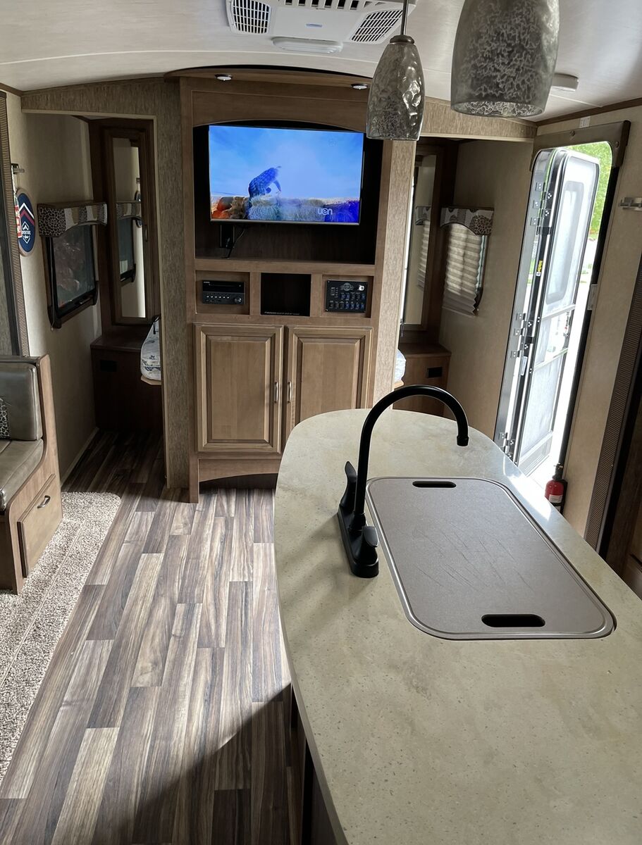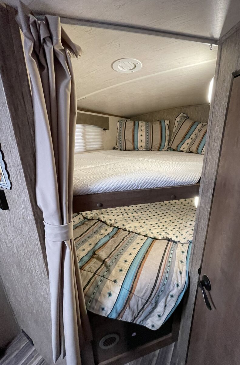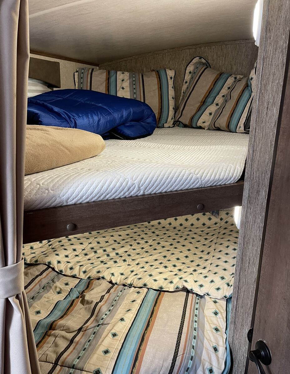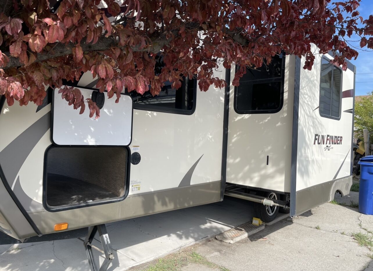 2016 fun finder Extreme light X-237DSB Travel Trailer, Two slide . Great layout in this Model HUGE LIVING ROOM You have enough living room floor and still have plenty of room to walk around, Big kitchen counter desk. Plenty of light as well!. Sleeps 8, full awning electric with LED light, 3 burner gas cooktop, oven, microwave, 2 door fridge/freezer, huge full bath with shower and lotta space, sink, toilet. Has plenty of storage: pass through, outside storage, outside the big kitchen with the Hot and cold water sink, storage under front bed and under dinette seats as well as many drawers and cabinets. Ducted A/C and furnace, 2 propane tanks, 2 batteries, battery. CD DVD player, Samsung smart TV, exterior speakers. Dry weight, half-ton towable very easy to pull. Sleeping options: front bedroom queen, table folding down,Two bunkbeds queen size. Roof it’s been checked by professional, back up camera and comes with a brand new Honda generator. AC,furnace,water heater,battery all work no hiccups, hard to fine dis layout could be perfect for leaving it, this trailer is perfect for family. $16,375.00. Price is below low retail. Mast see. Call or text 801-440-3723