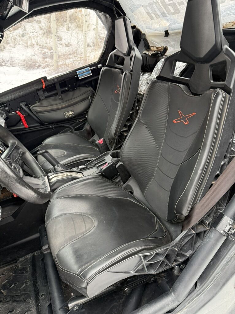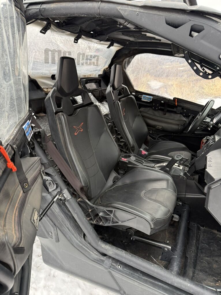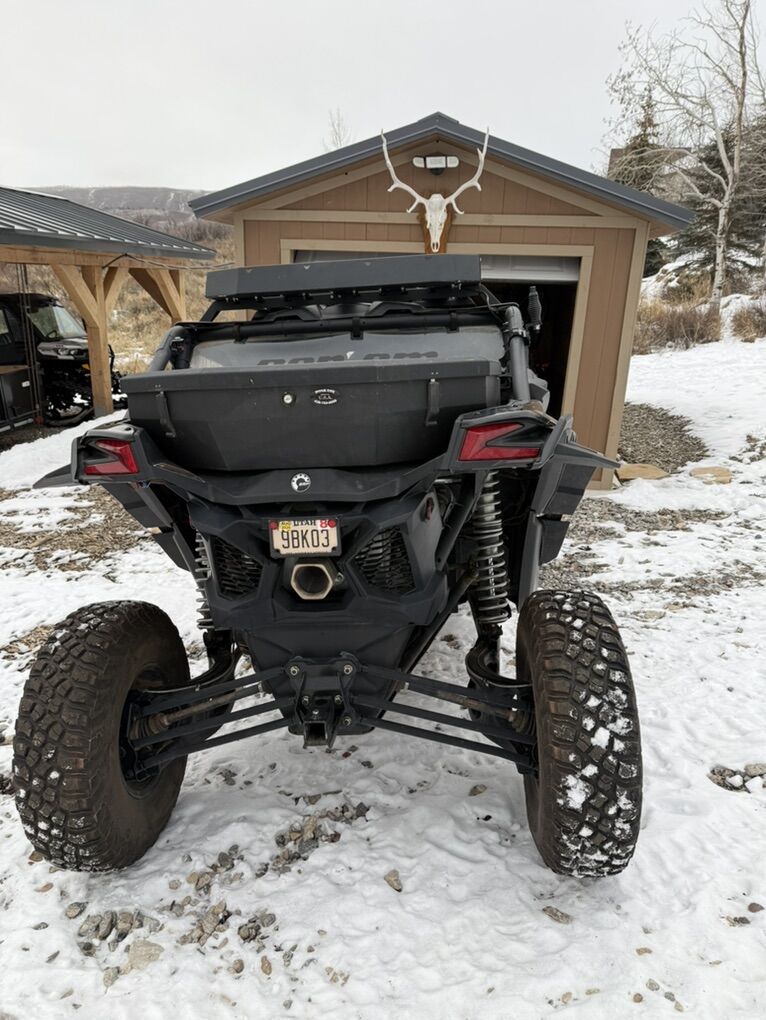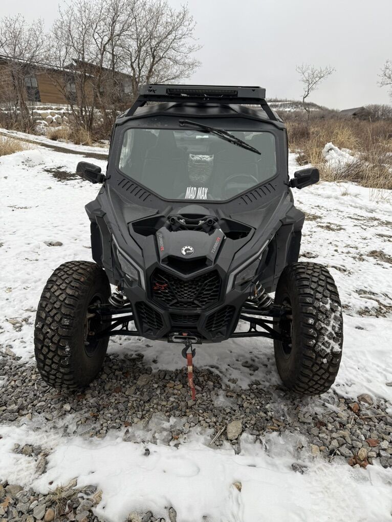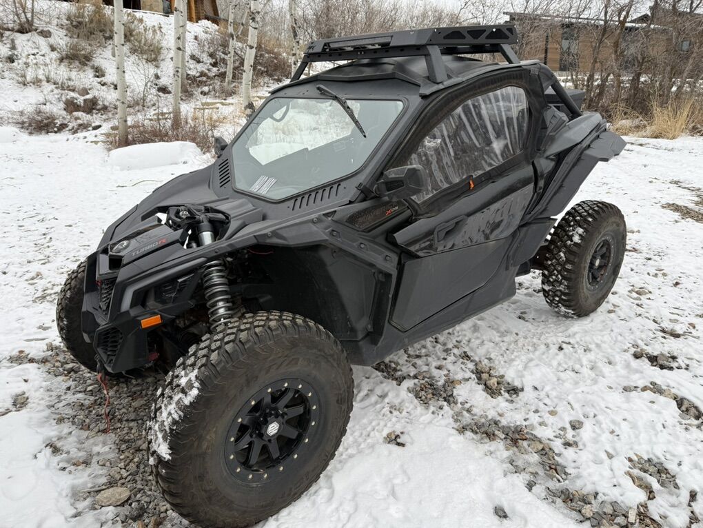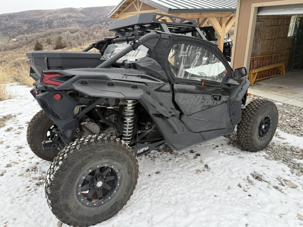 Canam maverick 3 xds turbo triple black loaded with accessories including custom bead lock wheels with 33 inch bf goodrich k2 tires new Roof rack with led lighting large rear cargo carrier 4500 lb electric winch synthetic cable Fang lights glass windshield with wiper side and rear soft windows no damage excellent condition 2019 with 4k adult driven miles