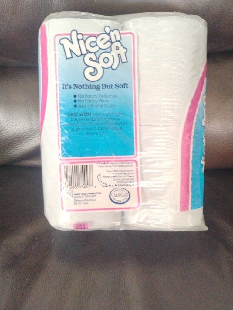VenmoThis vintage Nice 'n Soft toilet paper is a rare find from 1986 The soft blue color and gentle scent make it a unique addition to any collection.