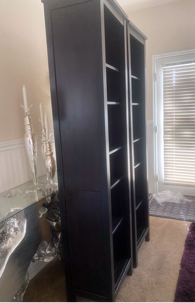 In good shape 2 ikea hemnes black brown bookcases , the dimensions are on one of the pictures, I’m asking $150 each message me if you’re interested, thanks!