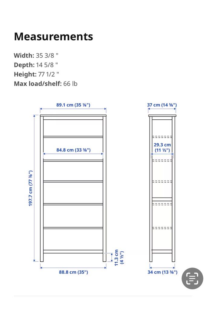 IKEA hemnes black brown bookcase in good shape, the dimensions are: Width: 35 3/8 Depth: 14 5/8 Height: 77 1/2 Max load/shelf: 66 lb I’m asking $280 for it , message me if you’re interested, thanks!