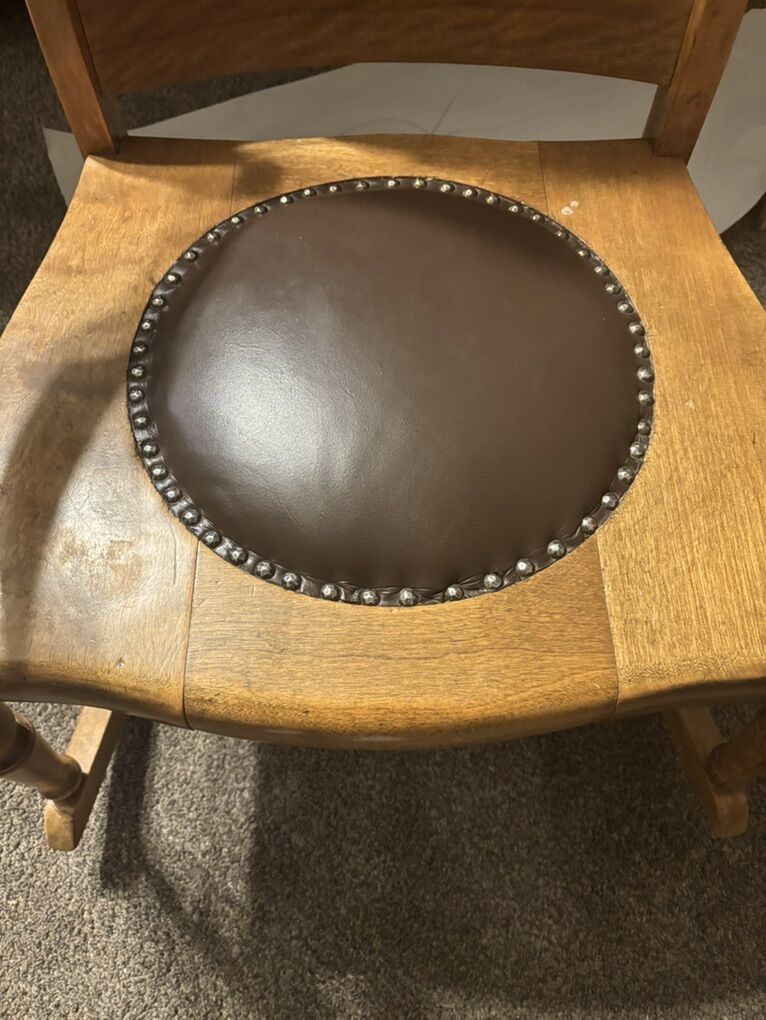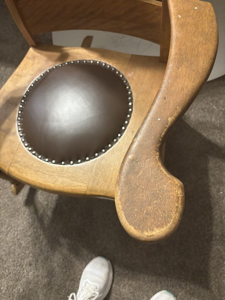 VenmoOld wood rocking chair. I have no idea how old other than it was my great grandmas. The seat was redone years ago. The arms are worn on the ends where you’d have your hands, but other than that in good condition.