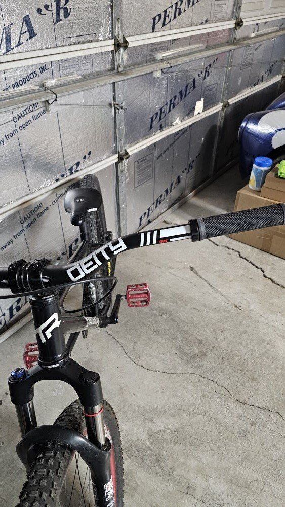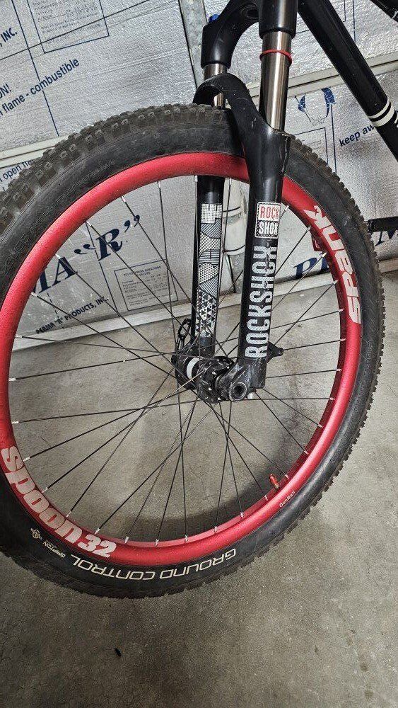 This dirt jumper has been a Great bike! -Just put on new deity bars and stem. (comes with a second set of deity bars and stem) -spank spoon front wheel -Adjustable rock shock front fork\
