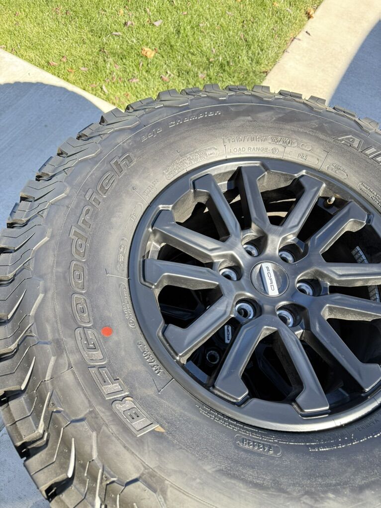 ApplePaySet of 4-Ford F150 Raptor Rims and Tires 315/70R17 Bfgoodrich Ko2 Load C Brand New only 25 miles on them in excellent condition,asking $2000 I can sell the rims or tires separately Bolt pattern 6-135 They will fit ford f150 Raptors expedition and Lincoln Navigator Text anytime 385-402-2292
