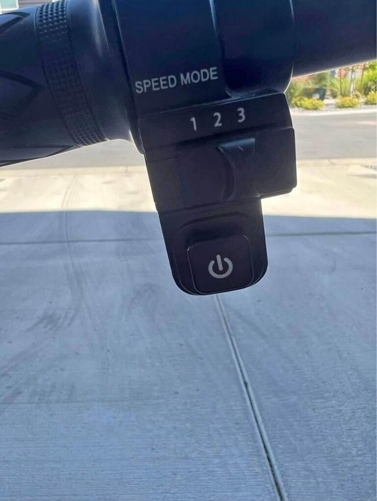 Zelle15 mph top speed Includes charger, air pump and other accessories. Overall it’s a great bike.