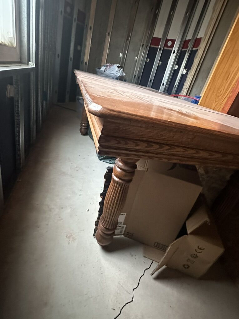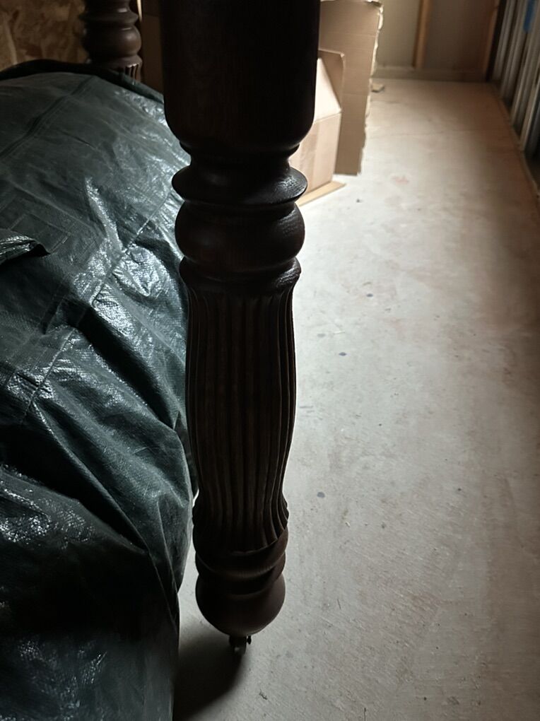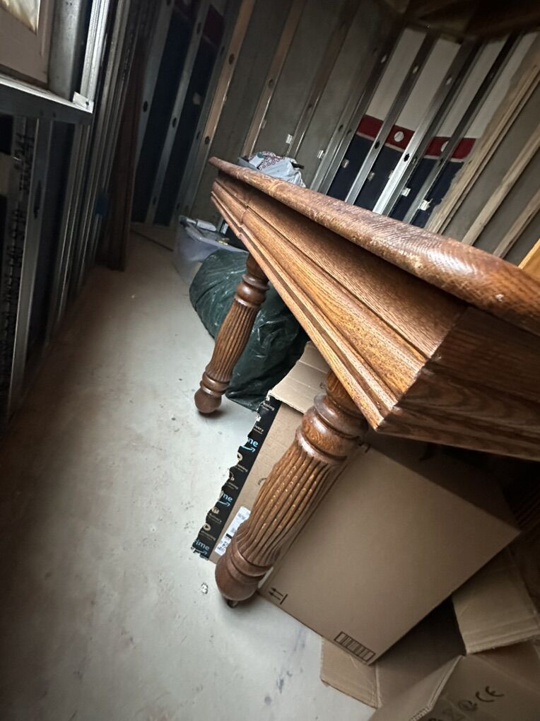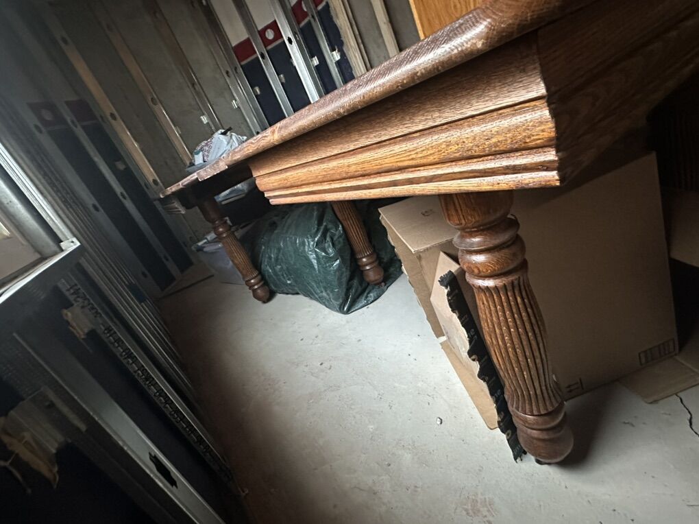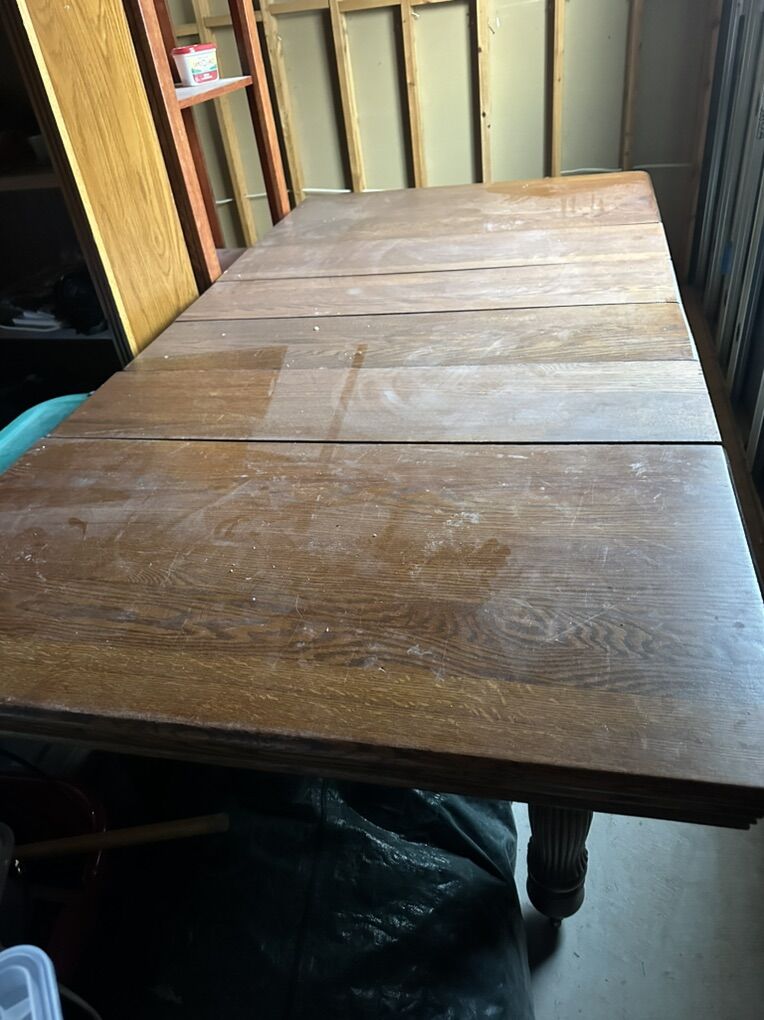 VenmoGood shape -antique oak expanding table with three leaves. On casters. Intricate carvings on legs.