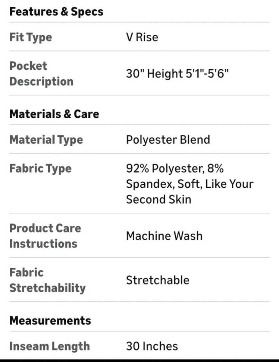 Inseam length: 30 in