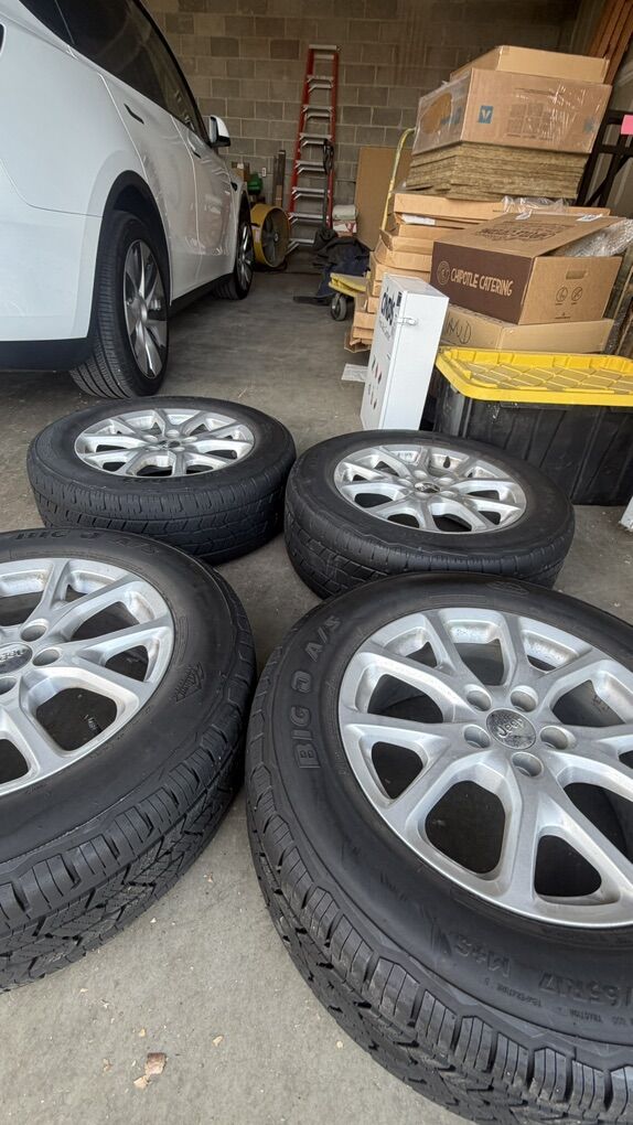 Venmo4 2014-2018 jeep cherokee 17x7 5 lug rims Big O Bigfoot a/s 225/65r17 tires 2 tires 9/32 tread 1 tire 4/32 tread 1 tire 2/32 tread Lug nuts included