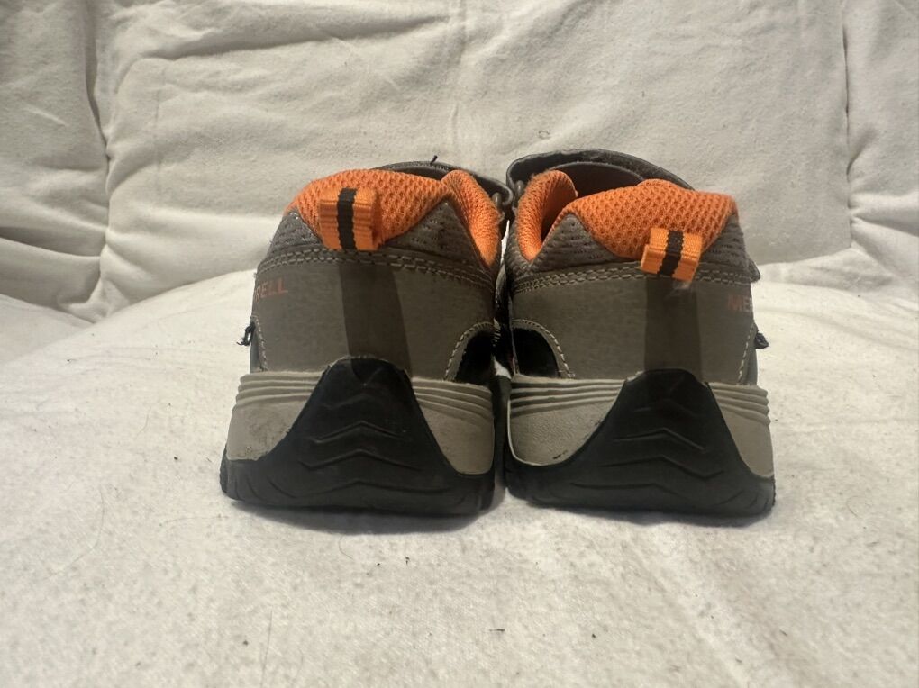 Merrill youth size 3 beige with orange trim, washable hiking shoes with the elastic laces and a Velcro strap. These are in good condition, see photos for details. I take cash or Venmo, but cash is preferred. Text is best. 801-201-4446. Check out my other ads for additional sizes and styles.