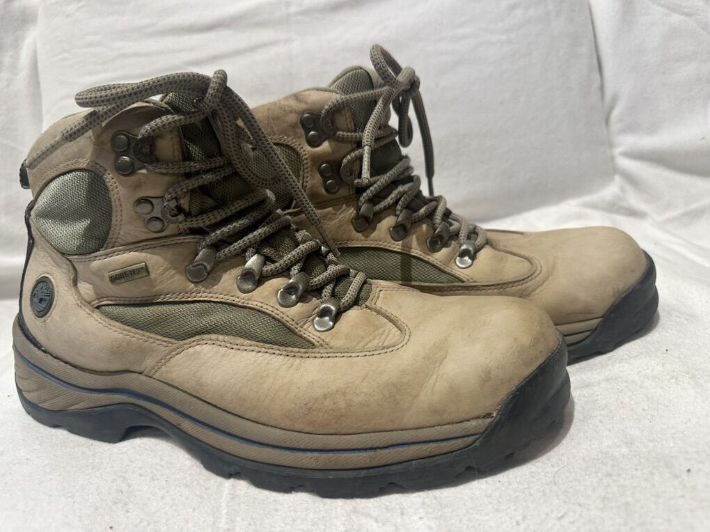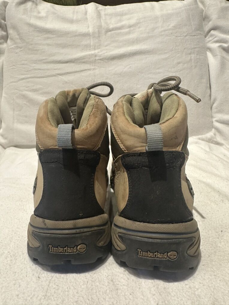 Timberland women’s size 10, beige leather and green textile Gore-Tex mid hiking boots. These are in good condition, see photos for details. I take cash or Venmo, but cash is preferred. Text is best. 801-201-4446. Check out my other ads for additional sizes and styles.